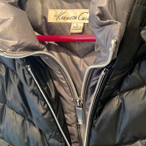 Kenneth Cole women’s puffer jacket with hood. Excellent condition! Pit to pit approximately 21”. Top of shoulder to bottom of coat approximately 24”. Features double contrasting front zip and zip front pockets. All zippers in excellent working condition