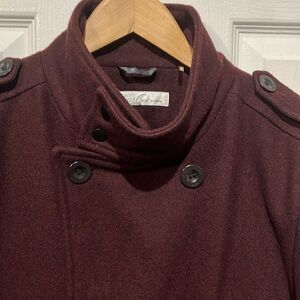 Kenneth Cole New York Maroon Wool Blend Double Breasted Pea Coat Size M