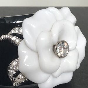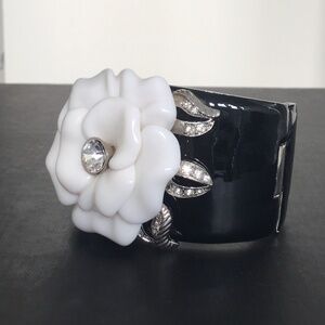 Kenneth Jay Lane Black Enamel cuff bracelet with white camellia flower S/M size