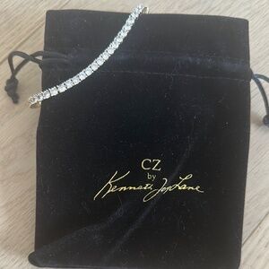 Beautiful Kenneth Jay Lane Gold and Crystal Tennis Bracelet with Gold Slider. Never worn. 9.5 inches around. Fits most with adjustable slider.