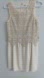 This elegant cream dress features a beautiful lace overlay, perfect for any special occasion. Its timeless design offers a sophisticated look.