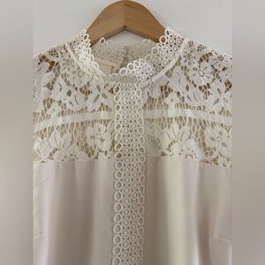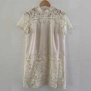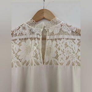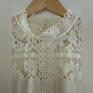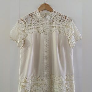 The pictures do not give justice to this dress - pearl button back closure, high neck, fully lined.