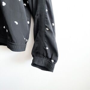 Kensie Light Satin Bomber Jacket Black with White Dots, Lined, Stand-Up Collar, Zipper, Women's M. Y2K. Raglan Sleeves. Very good used condition. Please see photos for approximate measurements.