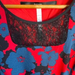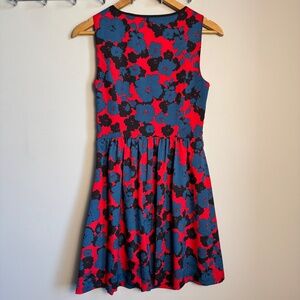 Kensie Sleeveless Fit and Flare Cocktail Dress Lined Red Floral Small Babydoll