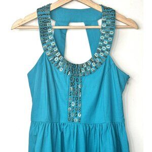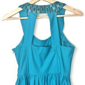 Kensie Women Green Sleeveless Beaded Neckline Side Zip Party Halter Dress Size 4