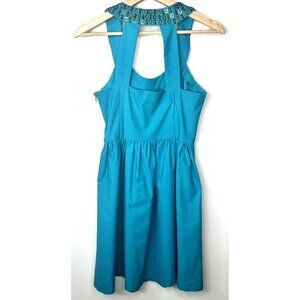 Kensie Womens Halter Dress Sleeveless Beaded Neckline Side Zip Party Green Sz 4