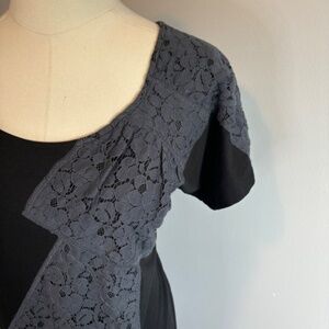 Kensie, Women's T-shirt Dress, Black with a Grey Lace Bow, SZ M
