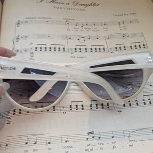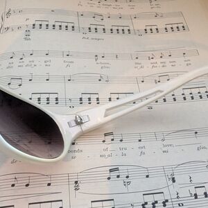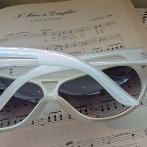 Chic white aviator sunglasses with dark lenses. Perfect for a trendy look.