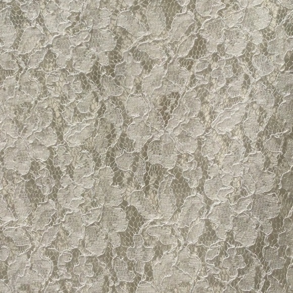 Pretty Kenzie lace dress size 6. Zips in back. Unlined lace sleeves, lined bodice and skirt. Measurements for waist & waist-to-hem in photos. Gently worn.