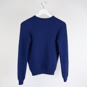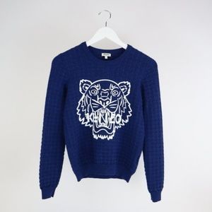 Iconic Kenzo signature tiger crew neck chunky royal blue sweater designed by Humberto Leon and Carol Lim with glossy white screen printed logo.