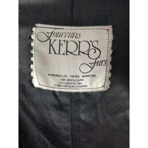 Kerr's furs Manitoba 2 piece parka from the 1980's.Matching dog sled pattern on bottom and bottom of sleaves on both the parka and the jacket. Some damage to the parka's lining and the fur trim. Leather trim on jacket is worn. Our mother loved this set and worn it often and with joy.