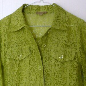 Kerry Brooke Women's Sheer Blouse Top Button Down Shirt Green Size Petite M
