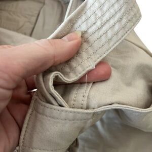 Classic and versatile khaki skirt by Kersh, size Medium. Features a belted tie waist, front patch pockets, faux welt back pockets, and a clean straight silhouette. Made from a comfortable stretch blend (65% cotton, 32% Tencel Lyocell, 3% spandex) that’s breathable and easy to wear. Perfect for casual styling, summer outfits, or business casual looks. Measurements included in photos for accuracy.