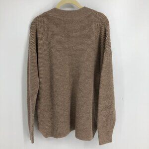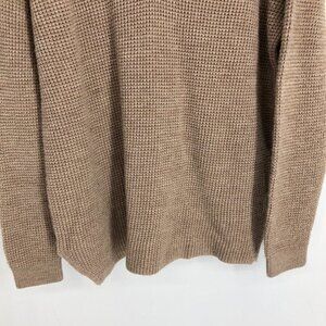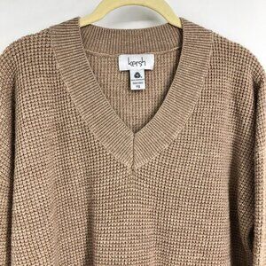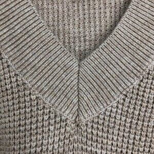 Kersh Light Khaki Tan Camel ribbed Knit V-neck Merino tencel Blend Sweater L
