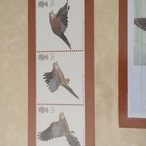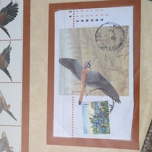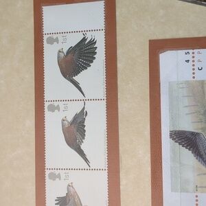 Explore the beauty of kestrels with this exquisite stamp collection sheet. An action strip from England and a printed envelope stamp from Canada. Comes with a Christian metaphor.