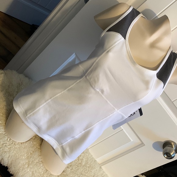 White and grey tank top. Keyhole back. 88% polyester, 12% spandex