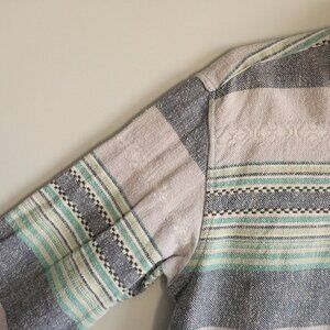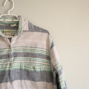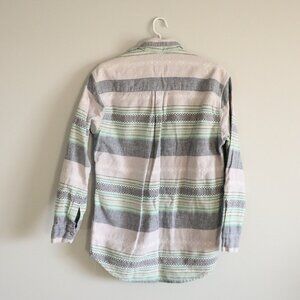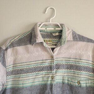 Khaki & Blues Women's Small Button-Down Pleat Collar Striped Casual Thick Shirt