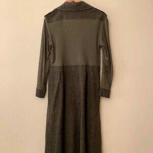 Khaki Green (Made in Switzerland) vintage long coat with ribbed details.