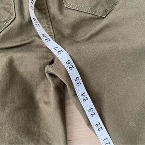 Figure flattering olive green khaki skinny jeans.