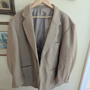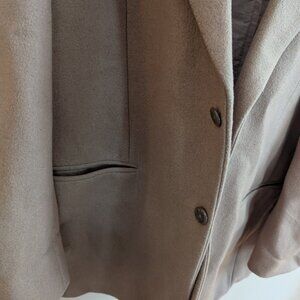 A gorgeous vintage blazer, originally found in the men's section but can be worn by any gender. Unsure of the material, but it is quite heavy and is definitely wool mixed with something else. There is some damage to the inner lining that was there when I bought it, probably from someone removing the shoulder pads from it. Should be a quick fix if you are a sewist, but it's not noticeable when you're wearing it.