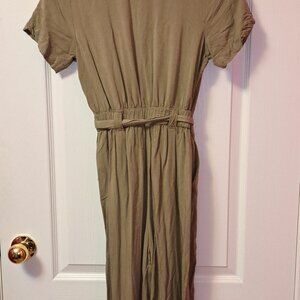 Khaki belted Jumpsuit, it has pockets! 100% viscose, short in length.