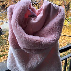 This soft, fuzzy Faux Fur/Sherpa vest features a split Kitty Cat face design and hooded ears. Perfect PINK color for a Cute, Coquette, or Y2K Aesthetic look. A unique and warm piece for Winter, Holiday Photoshoot, or as a Christmas Gift / Stocking Stuffer.