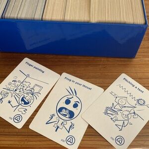 Fun game my kiddo loved playing with his friends. This is the illustrated version and has cute little cartoon graphics on each card. Previously and gently played with. All cards accounted for.