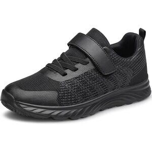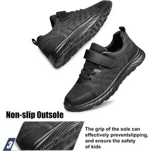 Kids All Black Lightweight Breathable Athletic Running Tennis Fitness Sneakers