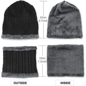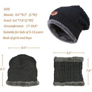 🆕Kids Black Knit Beanie Cap Winter Hat Warm Soft Fleece Lining Thread Scarf Set