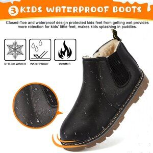 【Lightweight Winter Boots】Boys and Girls outdoor waterproof winter boots made with PU leather upper and Soft textile lining. Recommend Ordering One size larger from your regular size for extra thick socks or kids who have wide feet.