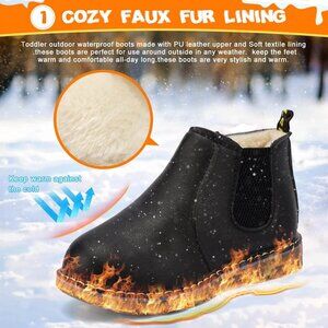 【Comfort & Warmth】 Featuring cozy and thick fur-lined inside. Fine fluffy wool covers the inside of the boys girls winter boots that make sure enough temperature to wrap your feet in warmth like a toasty quilt and offer cozy and toasty experience on your feet.