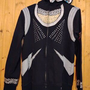 A child's black XL Volcom X Kiss full zip hoodie with Kiss mask. Modeled off a member of the famous band. Hoodie has been worn but is still in very good condition.