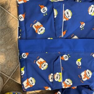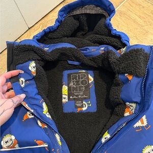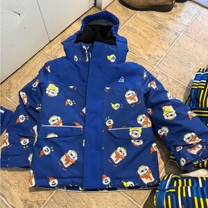 Keep your child warm and stylish with this vibrant blue jacket featuring playful patterns. Perfect for outdoor adventures.