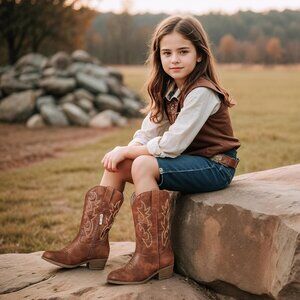 Versatile Paring:These cowboy boots for girls work greatly with a gorgeous Christmas dress or a fancy Halloween costume;Wear it in daily outfit like paring with skirts or jeans also makes a kid fashion and trending guy,standing out from the crowd.