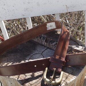 Kids brown leather belt ,by Kettle Creek.in good shape .The size is 36" inches long .Has a brass buckle.