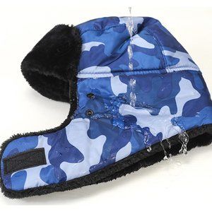 Kids Camo Blue Trapper Hats Winter Hats -40 Degree Resistance Waterproof