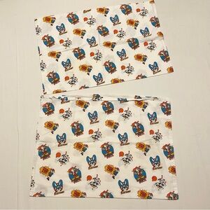 Both pillowcases are pre-owned and in used condition. One has an opening that is smaller than the other at the top. There are some loose threads and minor wear or them. Please see all photos for exact items.