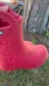 Bright pink Crocs with durable soles. Perfect for casual wear.