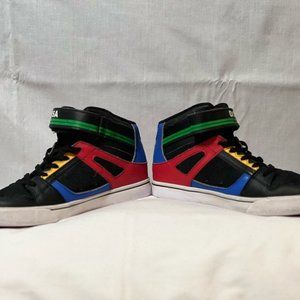 Previously worn, good condition. Black, red, green yellow. Size 6.5