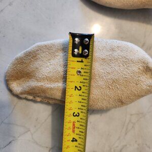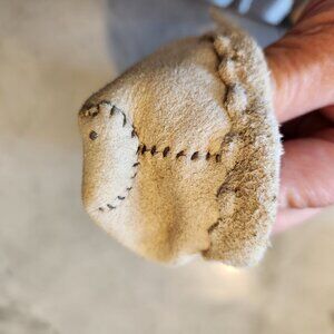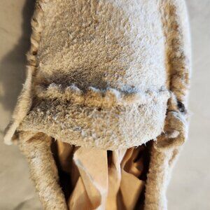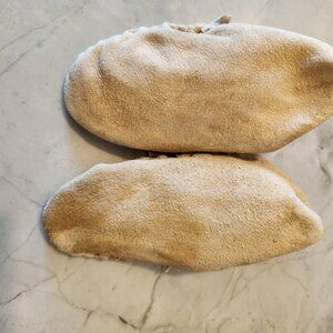Vintage (1960s) moccasins for child aged 2 to 4 depending on foot size. Handmade in Canada with genuine deer hide. Very soft and supple. Soft sole. See measurements in photos - these are just under 6" in length and about 2.5 inches wide tapering to the toe. Stitching and leather are in good condition. Very comfortable to wear or just put them on display.