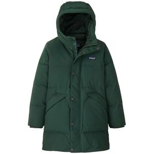 Patagonia Kid's Downdrift Parka in pinyon green.