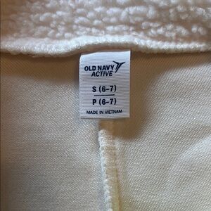 Cozy and stylish kids fleece pullover in cream with neon green accents. Perfect for keeping warm and fashionable. Girls size 6-7.