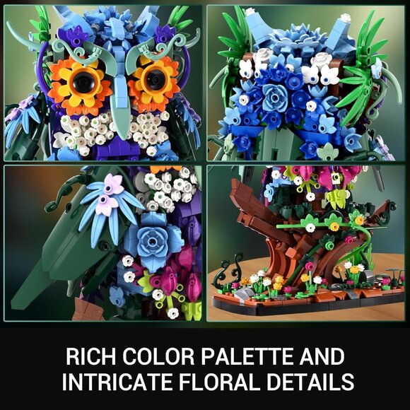 【Animal & Floral Aesthetic Fusion】 The Sillbird owl model building set is richly colored and its appearance design is inspired by flowers such as hydrangeas, gerbera daisies, gypsophila, blue roses, lupins and nettles. The owl's branch covered in flowers and plants, showcases the perfect blend of floral aesthetics and whimsical charm.