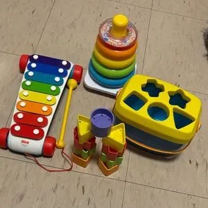 This fun toy set includes a colorful xylophone, stackable rings, and a shape sorter. It’s perfect for little ones and helps support early learning and development.