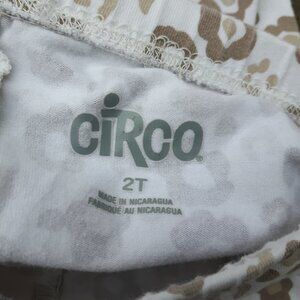 The leggings are 2T and have an animal print. Circo leggings.