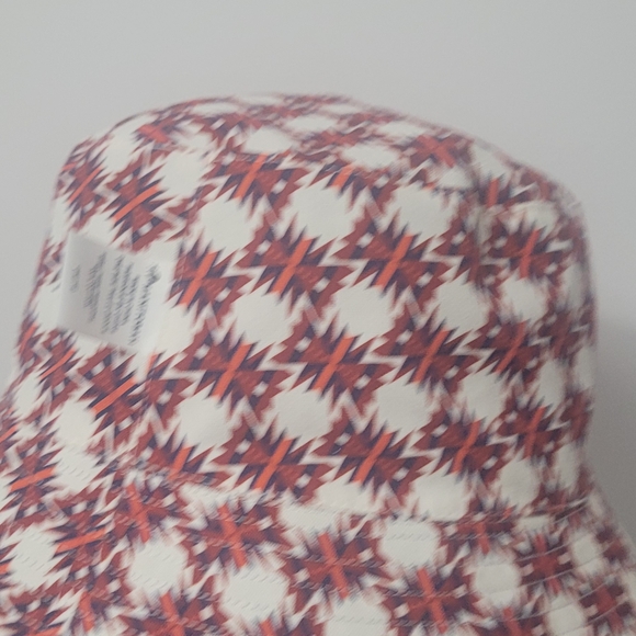Stylish and fun, reversible bucket hat features a vibrant red and white pattern. Perfect for 🍂 🥮 days and outdoor adventures.