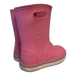 Preloved condition. Show some wear, has child’s name written in marker on the inside. Adorable little handles for easy pull on. I love these boots. Thanks for looking!