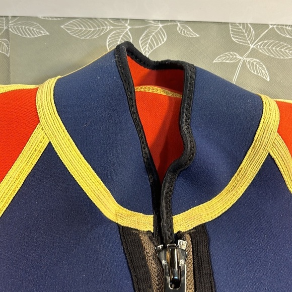 Kids Recss Wet Suit. No Sizing, see measurement’s in photos. No rips or stains. Some pilling on the outer shell.
