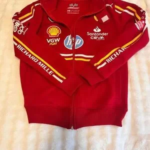 This vibrant red racing team jacket is perfect for young motorsport enthusiasts. Featuring a stylish design with bold logos, it's both comfortable and eye-catching. Ideal for everyday wear or special occasions.
