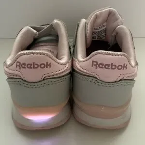 Stylish Reebok shoes in soft grey and pink that light up. Perfect for everyday activities.
